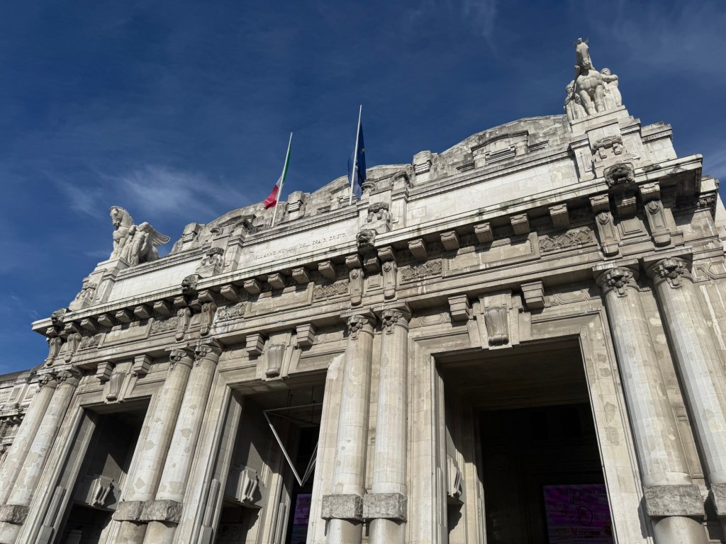 The economic option is to fly Wizz Air to Bergamo Airport, about an hour outside of Milan. A Terravision bus ride got us to Central Station in Milan just in time to watch the torch parade by and exchange occur.