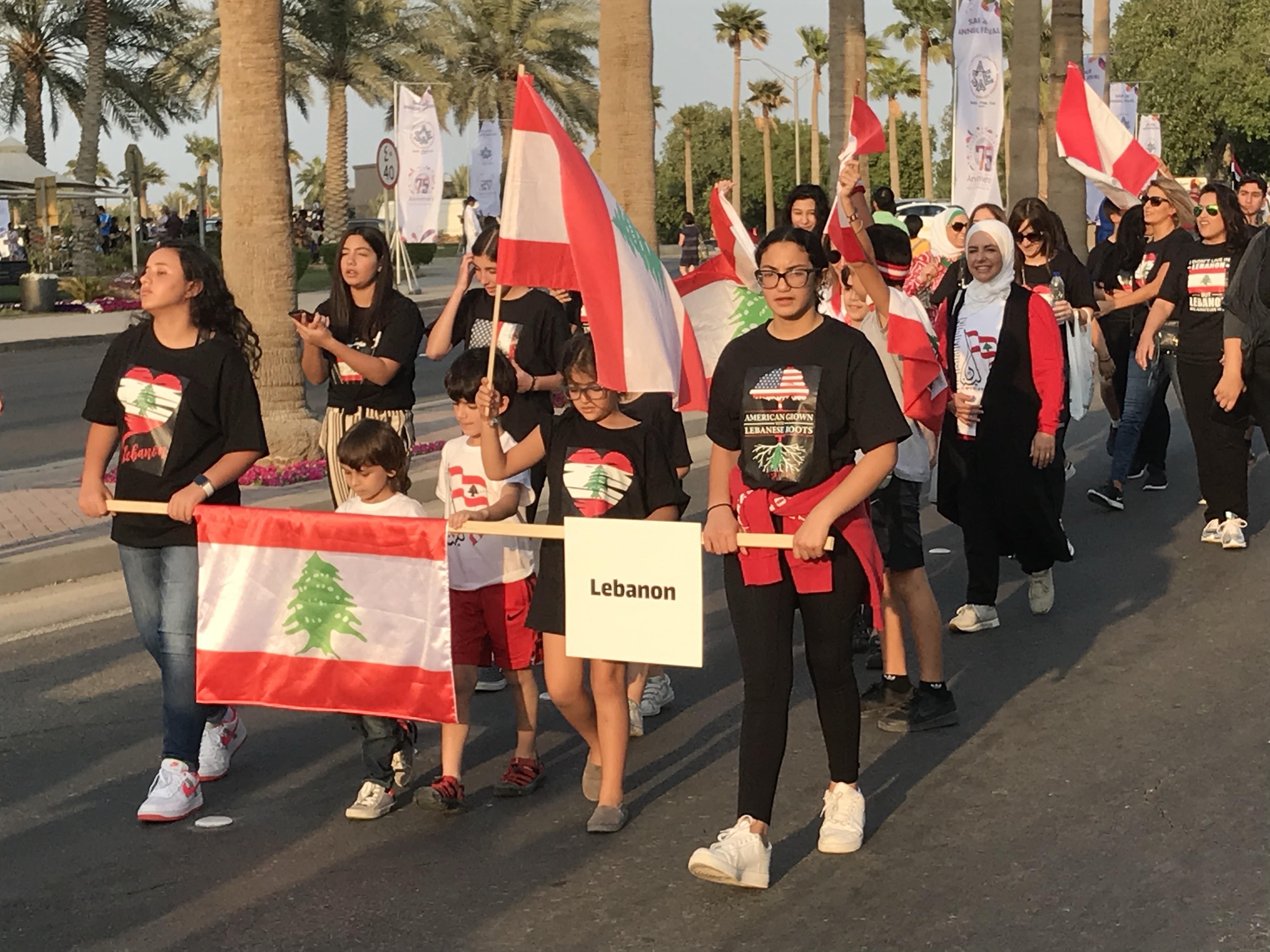 On Halloween night, my parents arrived at the Dammam, Saudi Arabia airport, via Amman, Jordan via Chicago. The next morning, we enjoyed a walk around the compound followed up with a parade that happened to be held that day. I was walking with a dozen members of a student service club I help sponsor at my school.