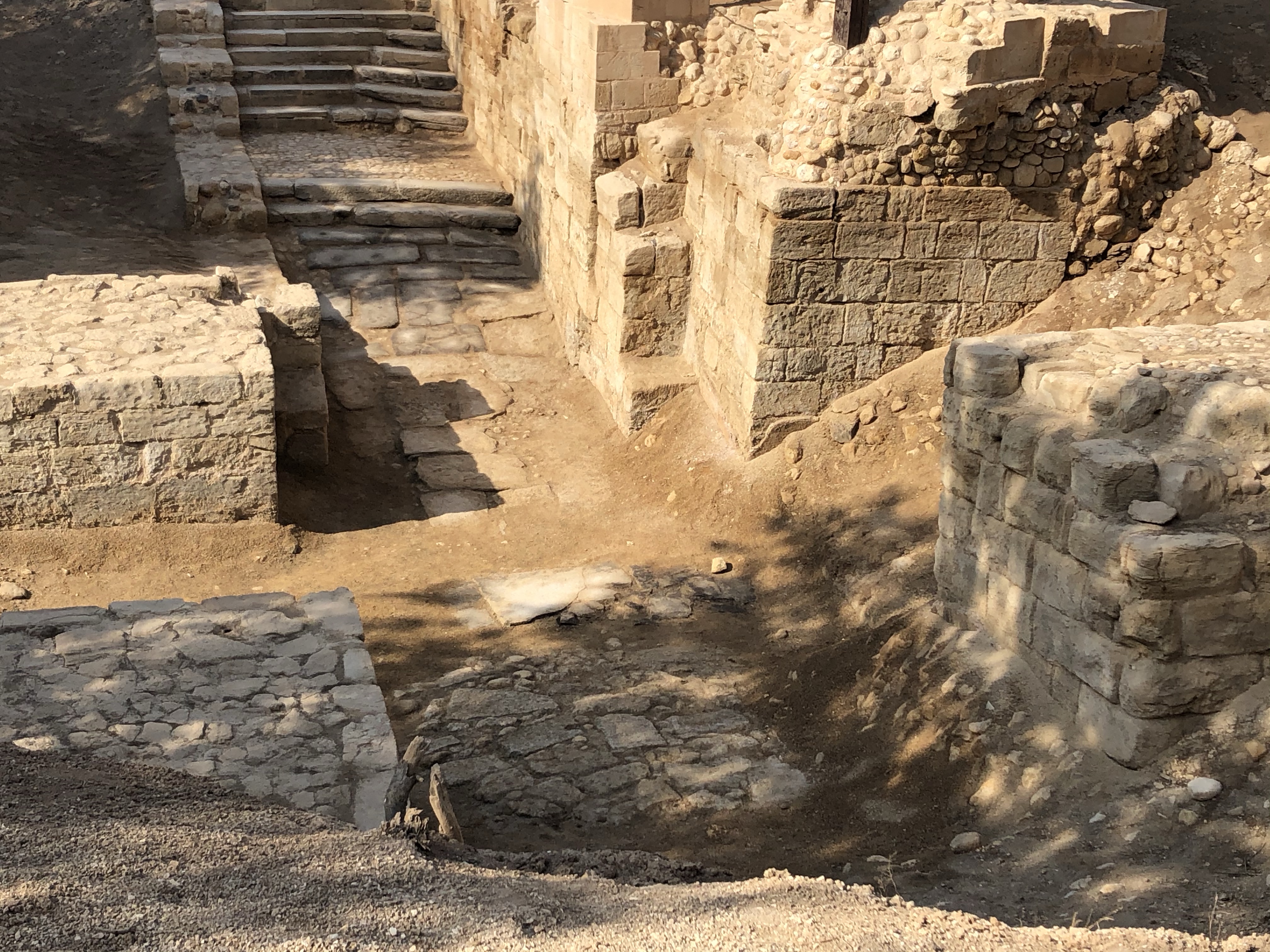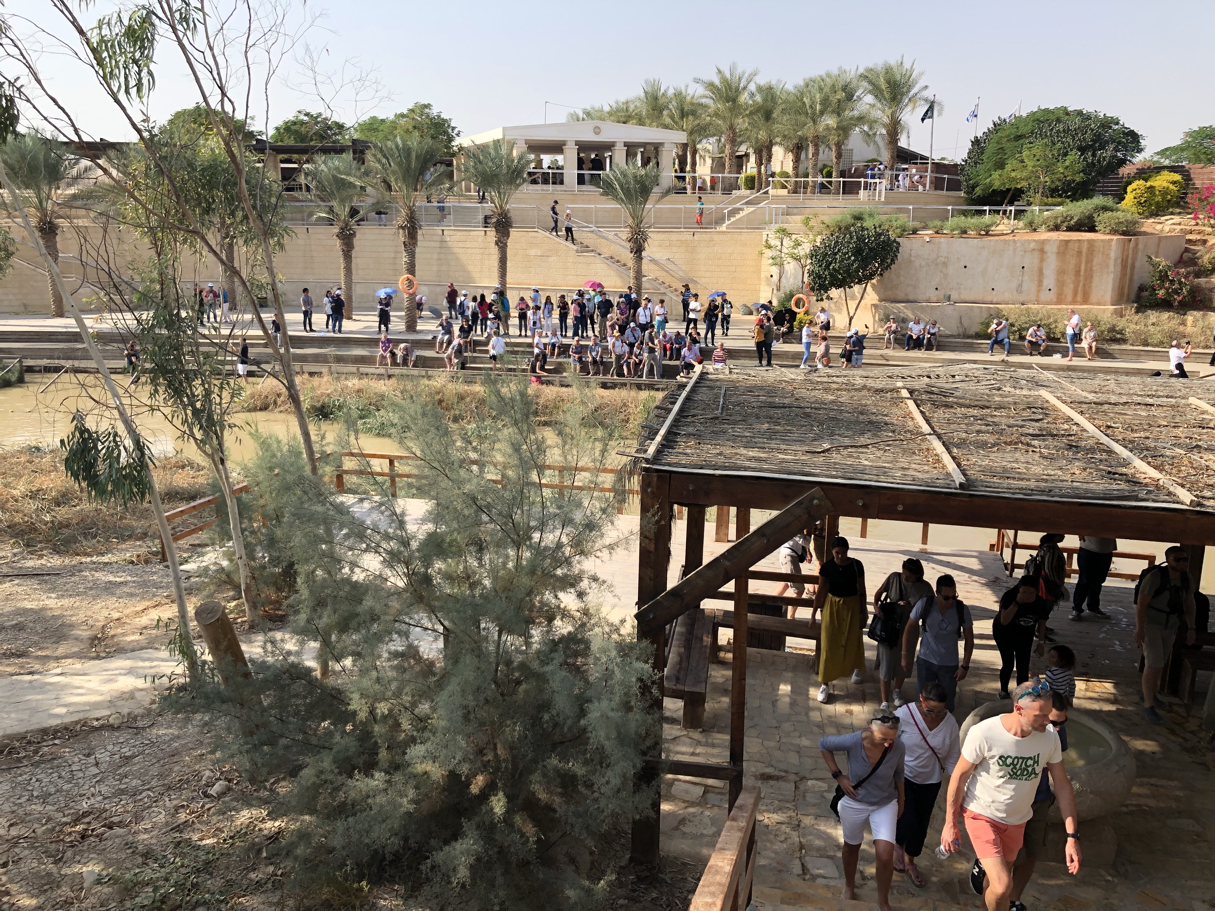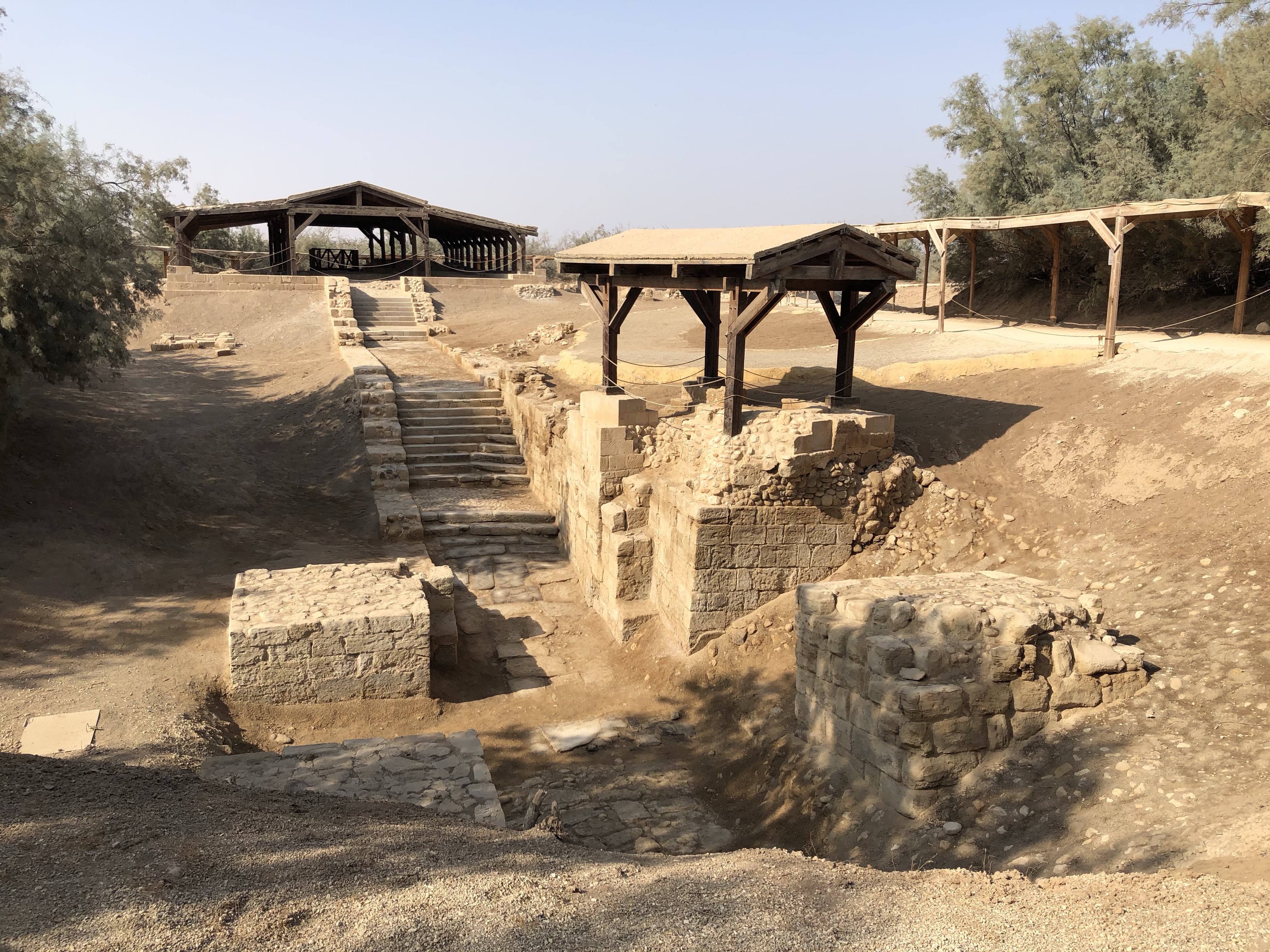 Then it was on to Jesus’ Baptism site North of the Dead Sea along the Jordan River which borders Jordan and Israel. My mom, Dad, and I were given secret permission by our guide to walk down and touch the stones between the four pillars, believed to be THE site. I guess he could tell it meant a lot to us to be there.
