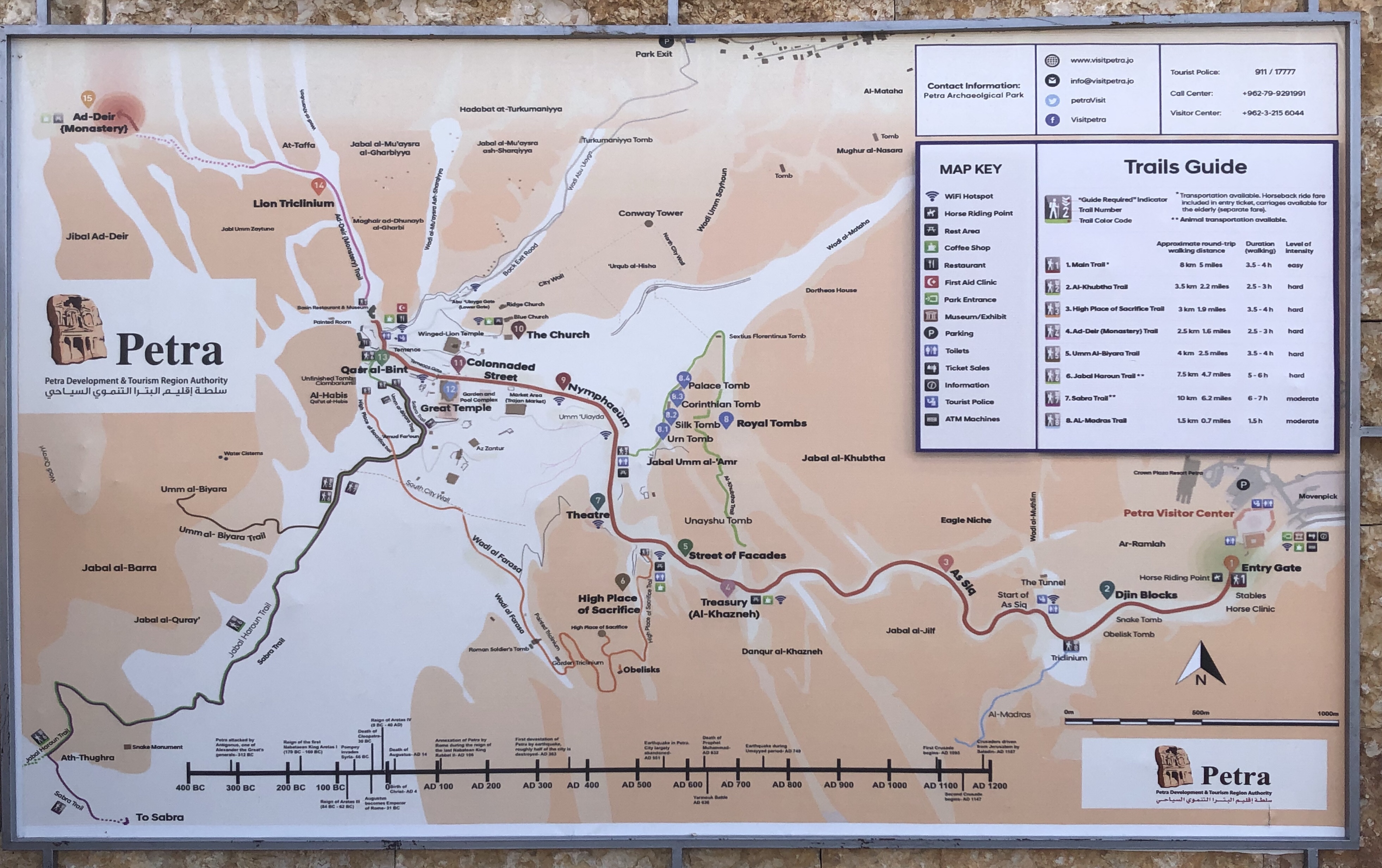 Then a walk around more of the incredible ruins. We finished with a 2 mile hike up to the monastery building, which looks similar to the Treasury building. You can see it as “Ad Deir” on the far left of the map below.