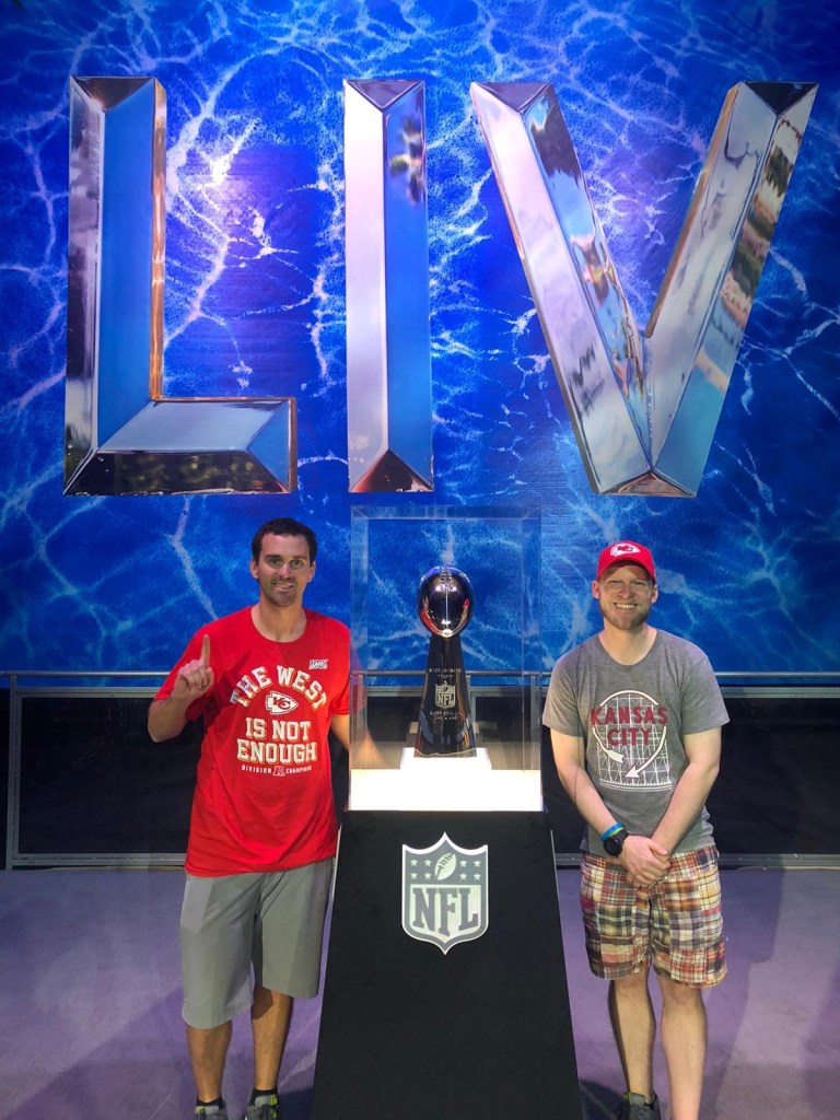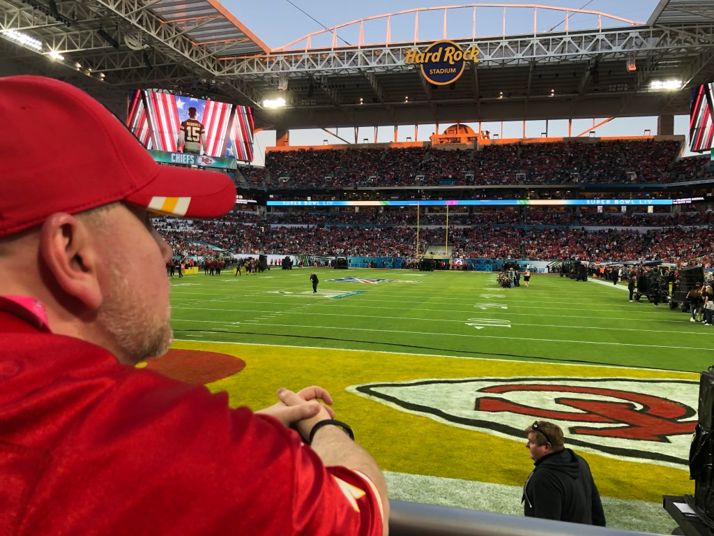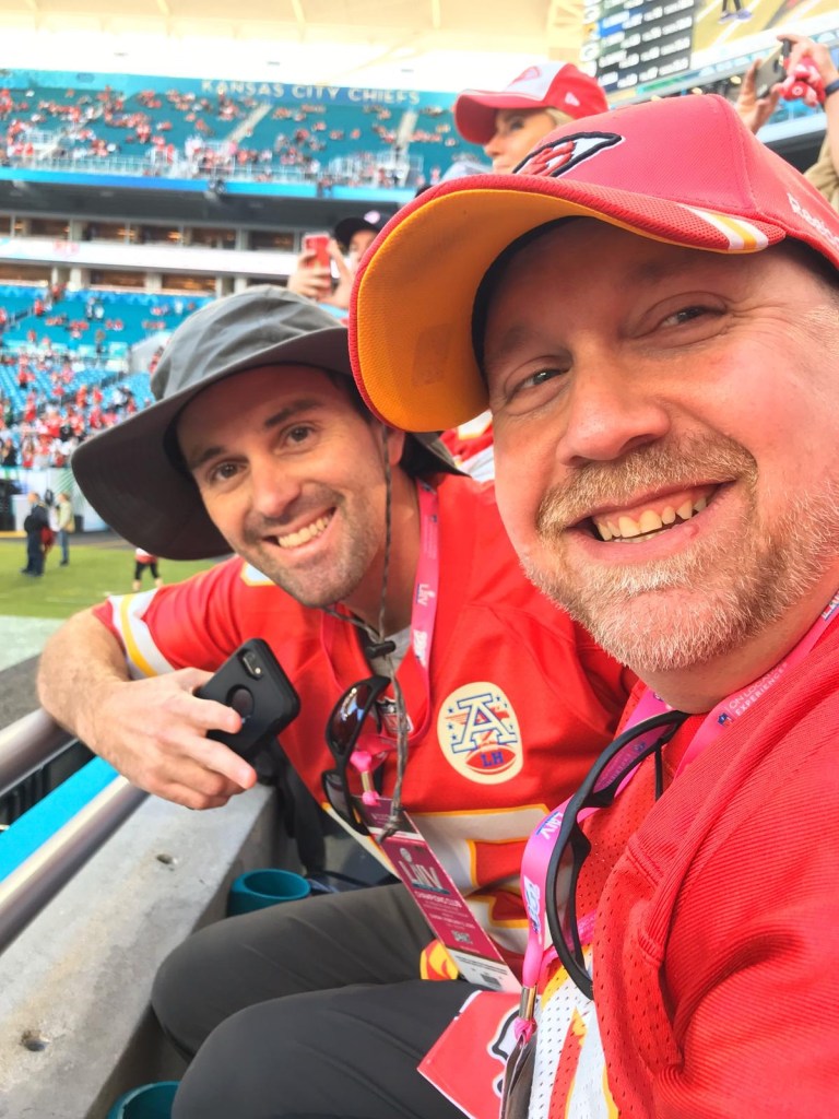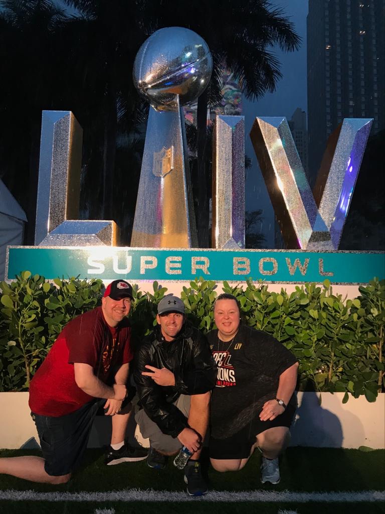 So, in February, I set up some meetings and flew back for a week. It so happens that week was Super Bowl week. Of course, I had to get tickets to see my Chiefs! Coordination with former teaching teammate, friend, and fellow fan Kerri and Kevin Beck resulted in buying tickets online. We ordered row 17, but when they came in the mail, they were row 1!! A very welcome surprise and amazing time had there.