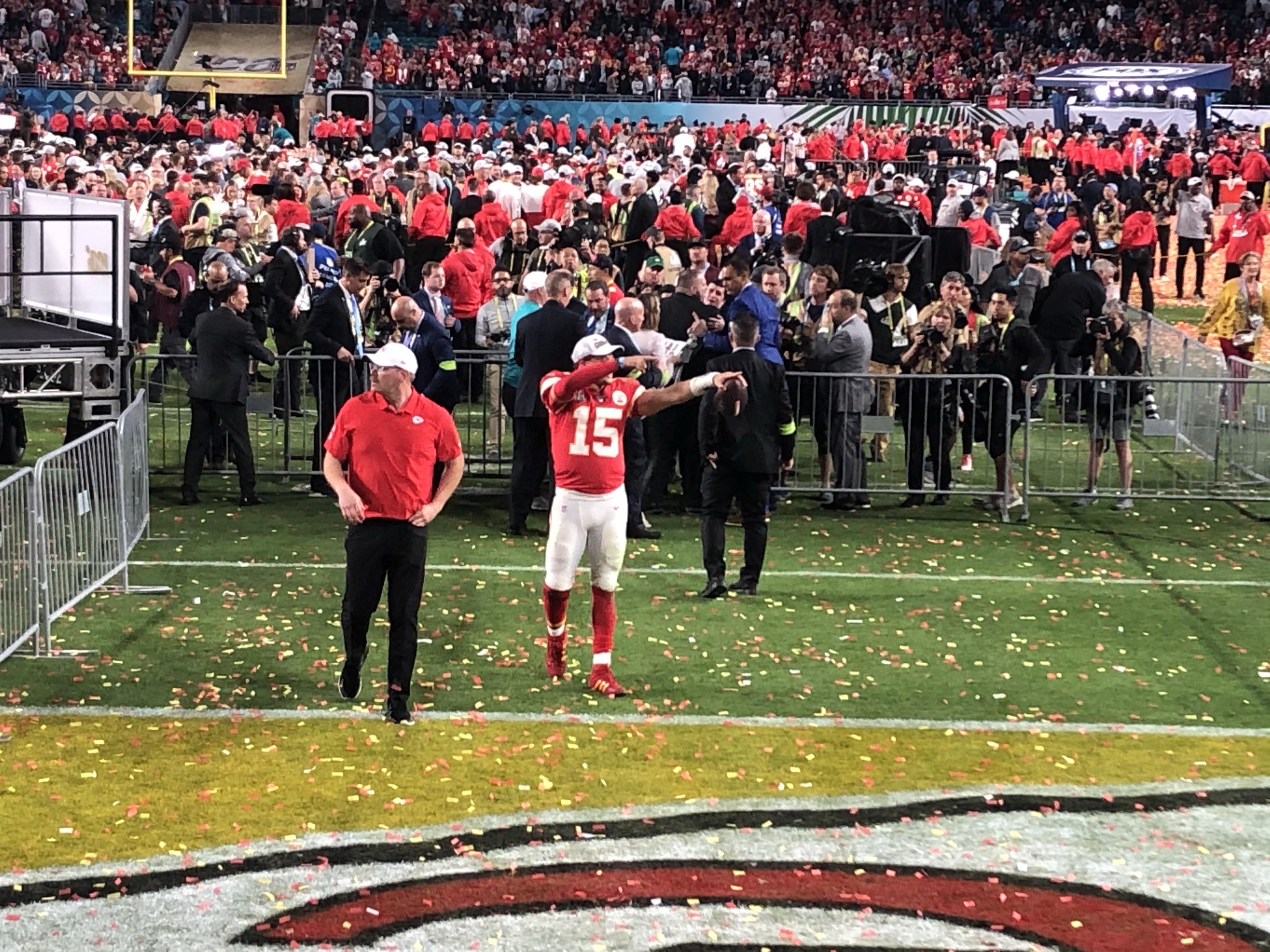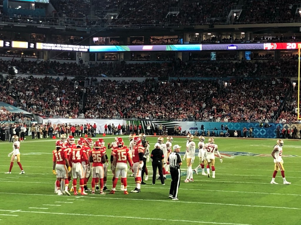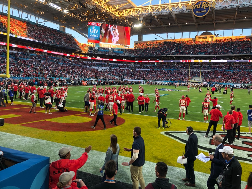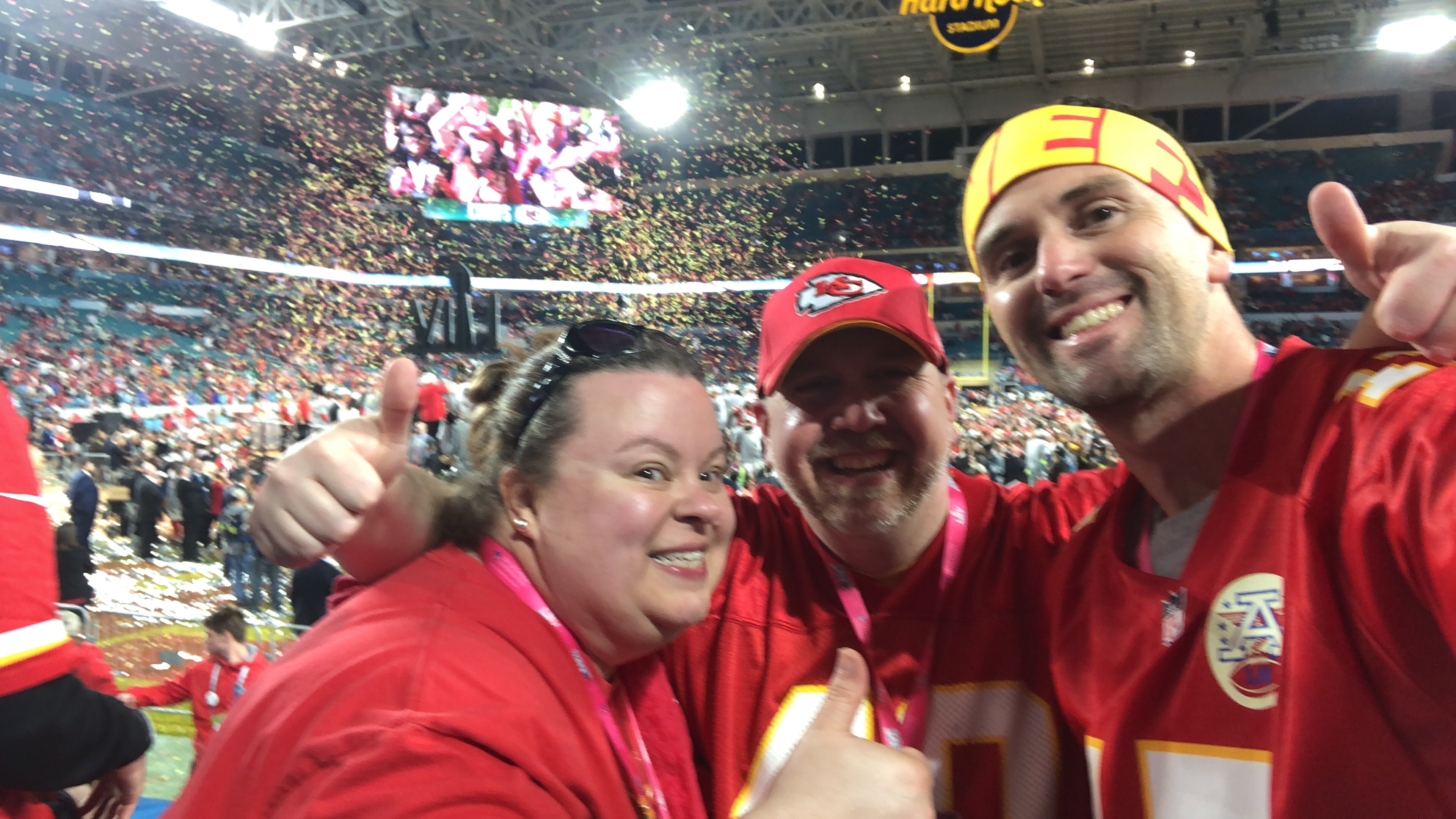 So, in February, I set up some meetings and flew back for a week. It so happens that week was Super Bowl week. Of course, I had to get tickets to see my Chiefs! Coordination with former teaching teammate, friend, and fellow fan Kerri and Kevin Beck resulted in buying tickets online. We ordered row 17, but when they came in the mail, they were row 1!! A very welcome surprise and amazing time had there.