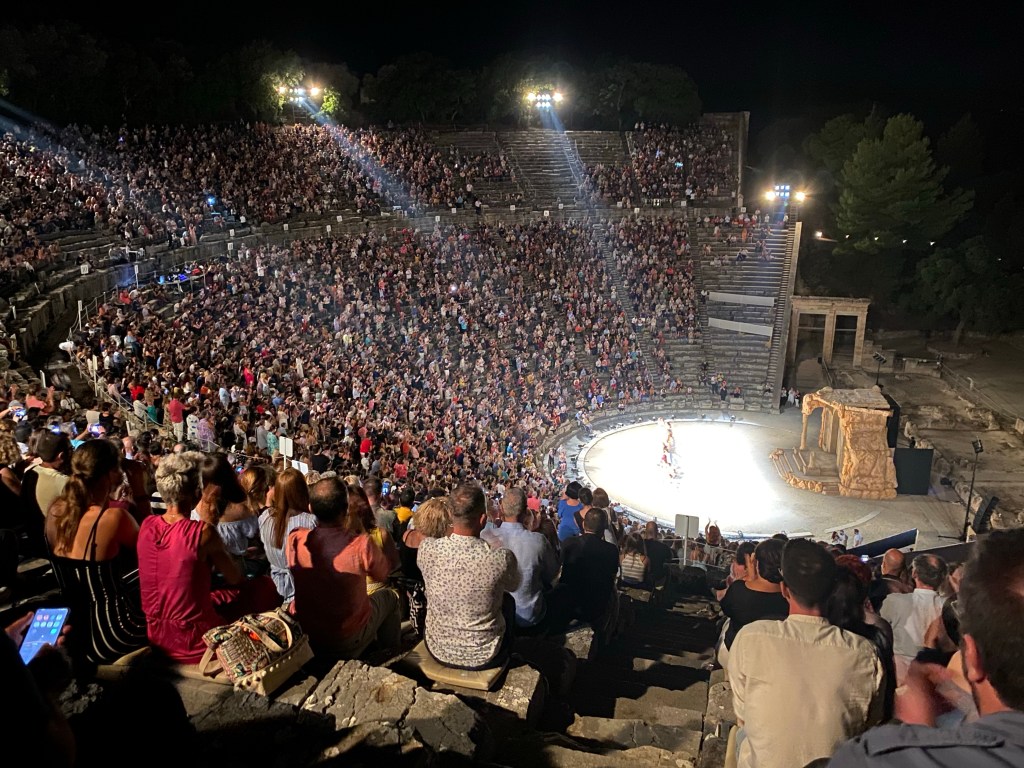 One night we drove into Epidavros to attend a tragedy at a fourth century BC theater.