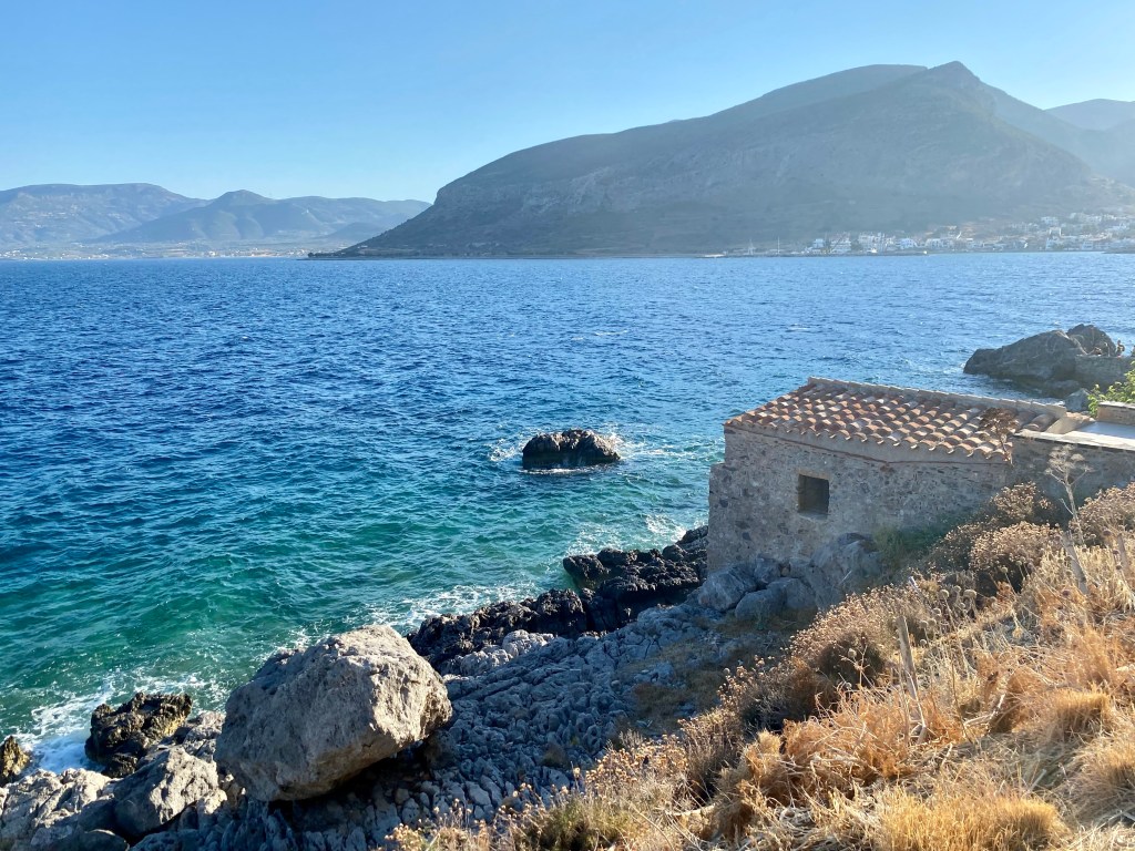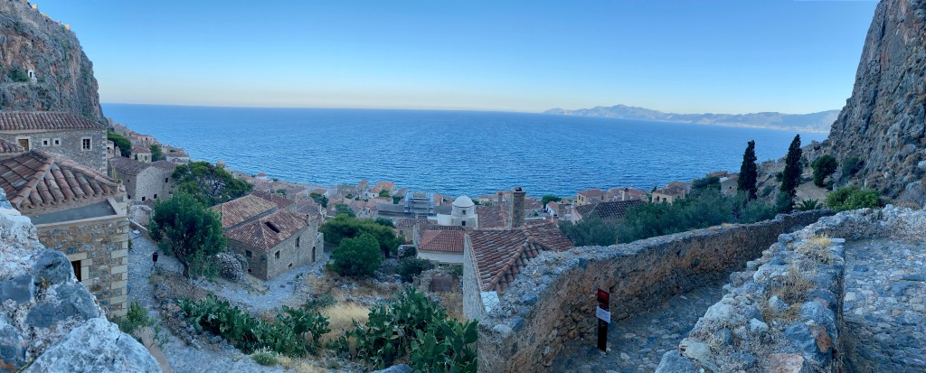 After two nights there, we drove through the mountains South to Sparta on the way to our stay in Paralia and visit to the old town of Monemvasia.